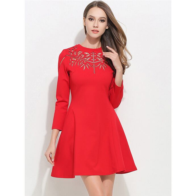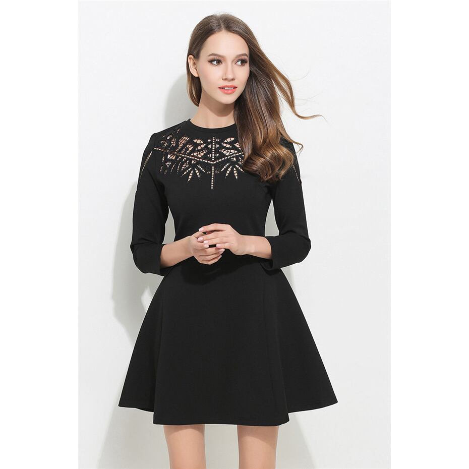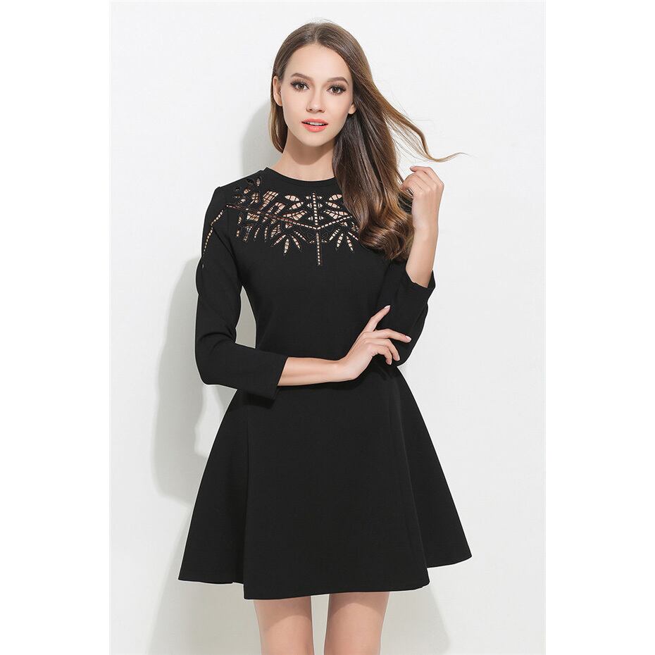 ☆SALE☆ ★胸元&ショルダーカットワーク♪フレアーワンピース全2色★