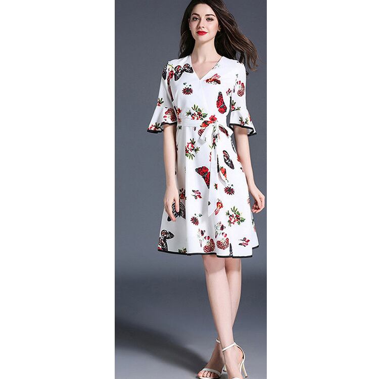 ☆SALE☆ ★花と昆虫たち柄♪フレアースリーブVネックワンピース★