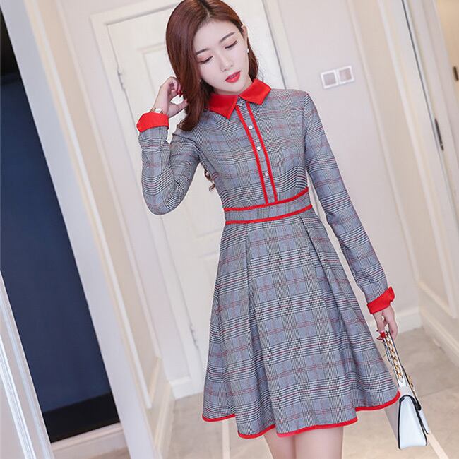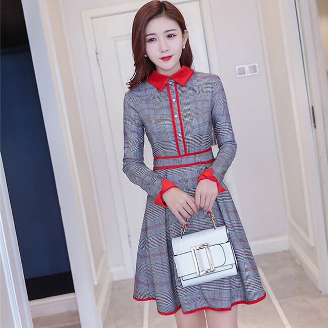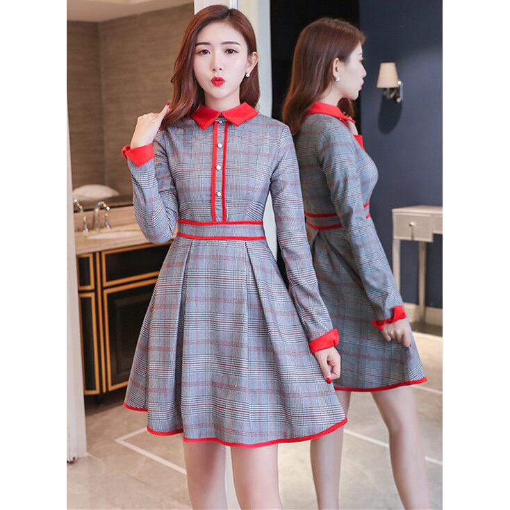 ☆SALE☆ ★華やか差し色レッドカラー♪チェック柄フレアーワンピース★