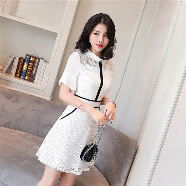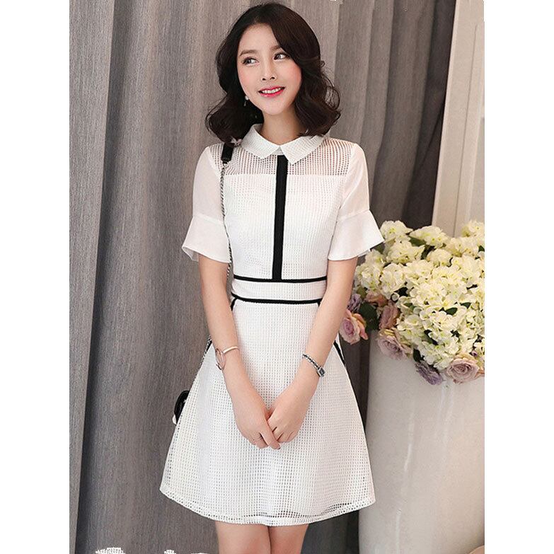 ☆SALE☆ ★黒ラインアクセント♪レイヤードメッシュ白ワンピース★