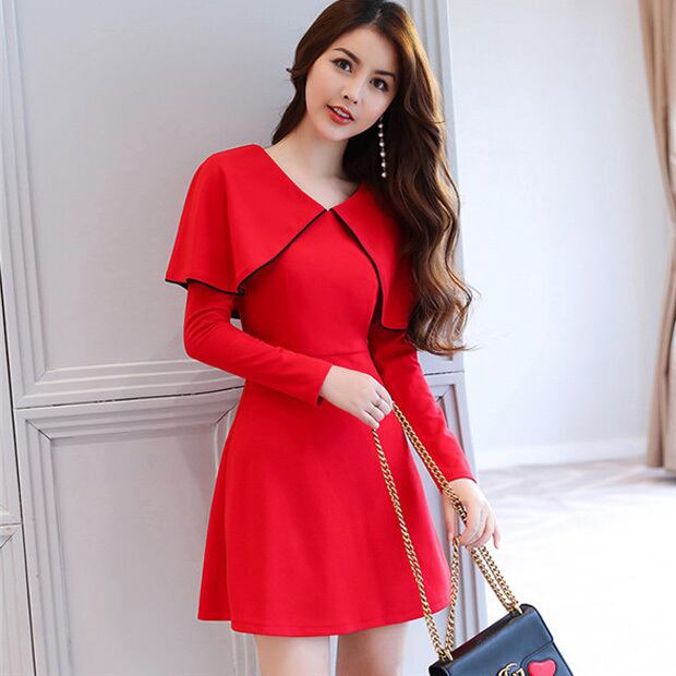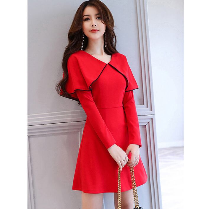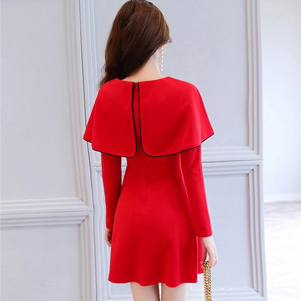 ☆SALE☆ ★黒ラインケープショルダー♪シンプルシルエットフレアワンピ★