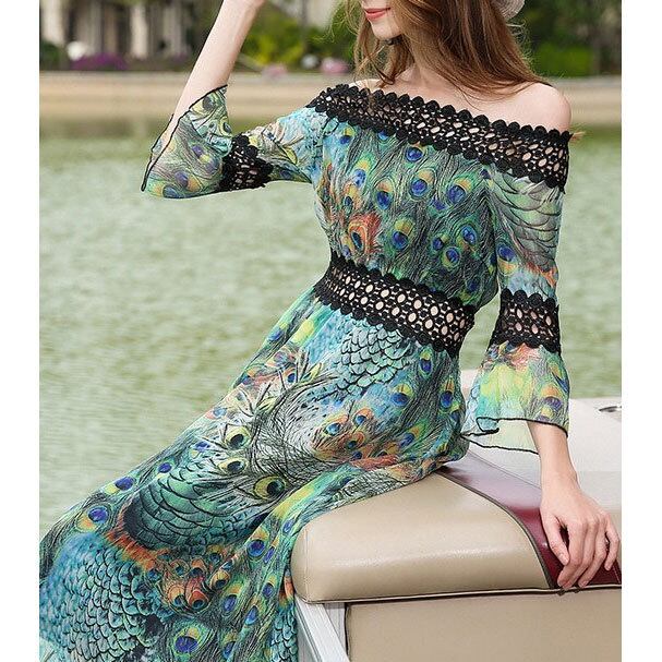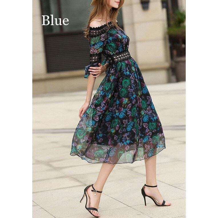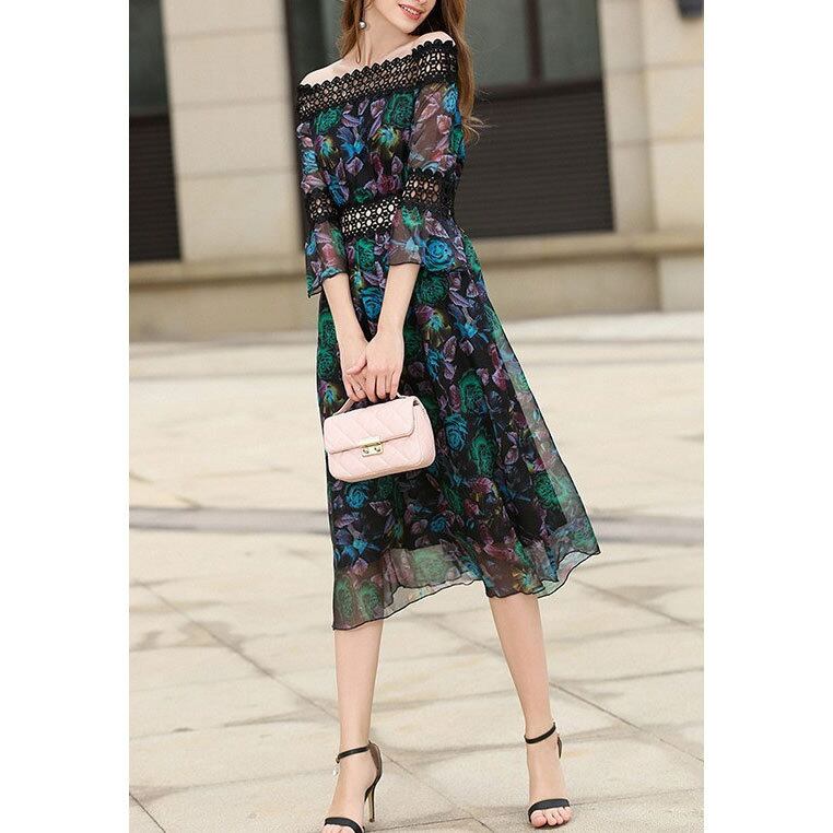 ☆SALE☆ ★黒レーストリムオフショル♪華やかシフォンワンピース全2種★