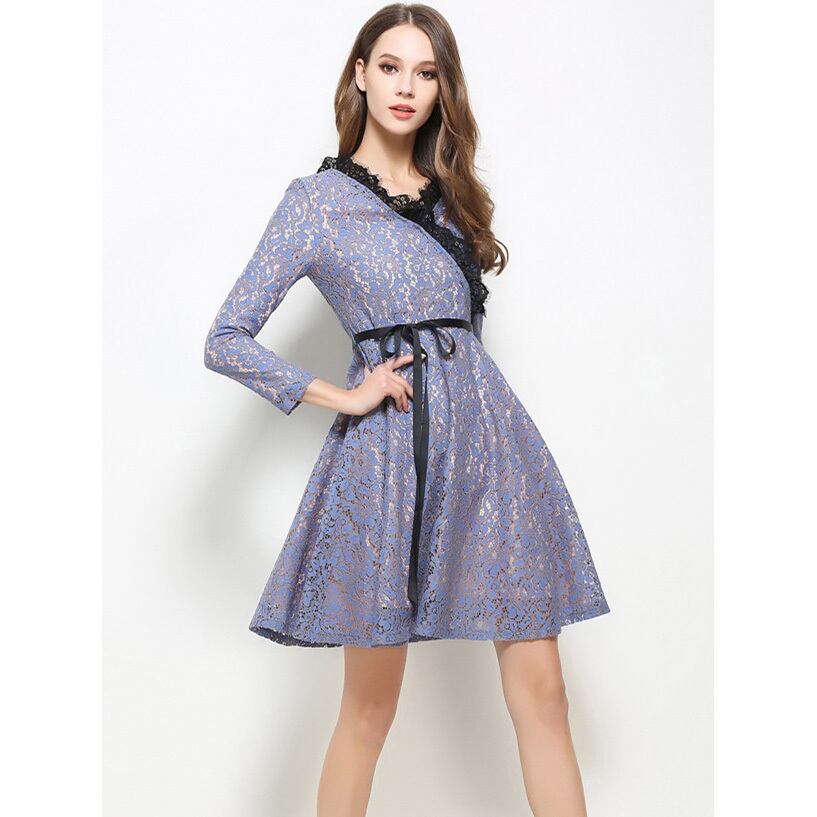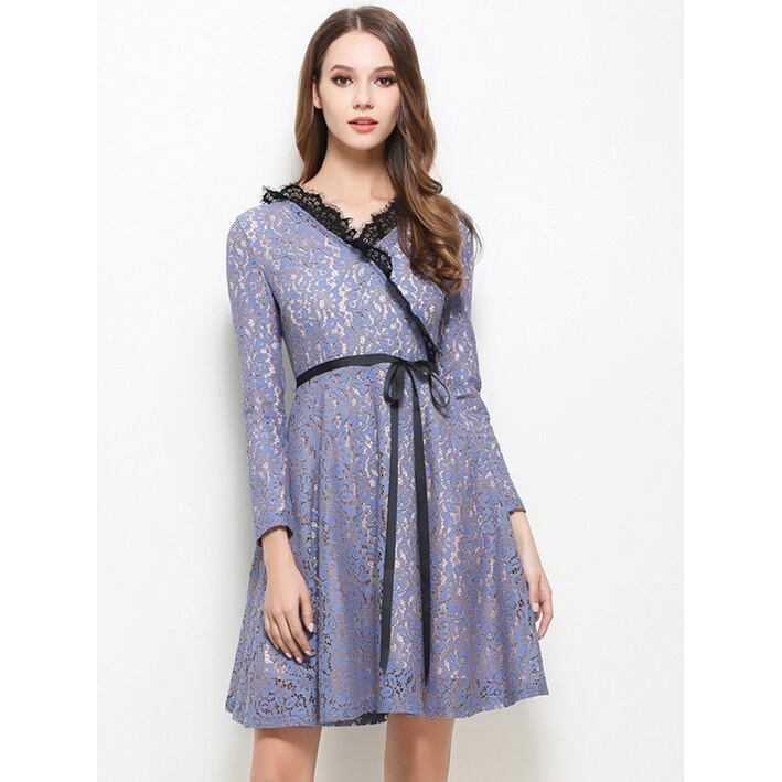 ☆SALE☆ ★黒レーストリムカシュクールネック♪総レースワンピース★