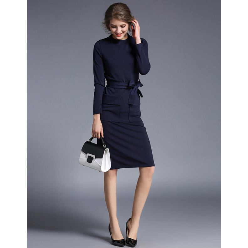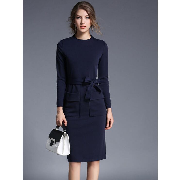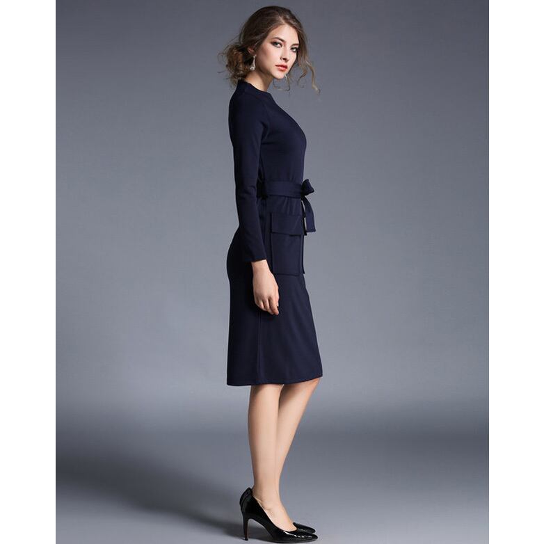 ☆SALE☆ ★Wポケット&リボンベルト♪ボトルネックワンピース全2色★