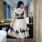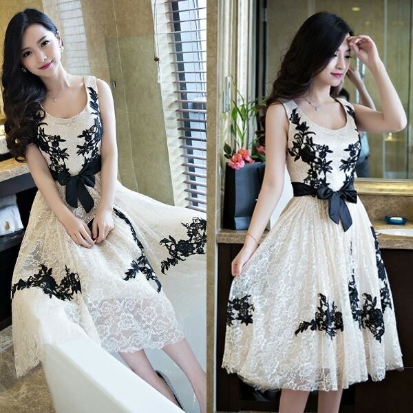 ☆SALE☆ お上品なレース刺繍パーティードレス ミドル丈 ノースリーブ