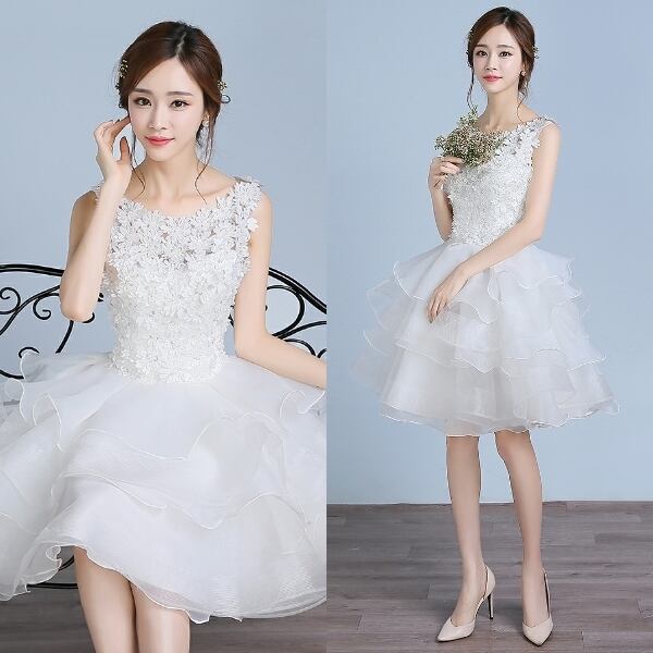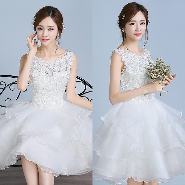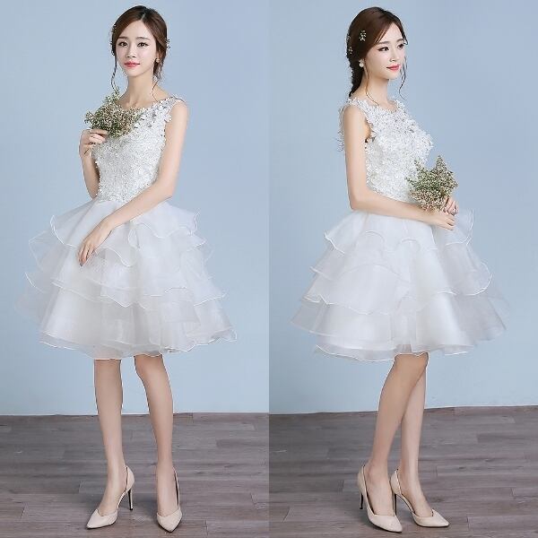 ☆SALE☆ ふんわり3段フリルパーティードレス 白 ノースリーブ 結婚式