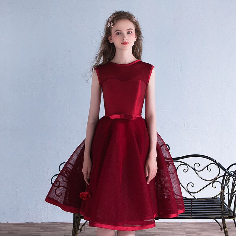 ☆SALE☆ ウエストマーク 膝丈 パーティードレス サテン 赤青 結婚式 衣装