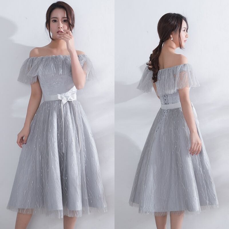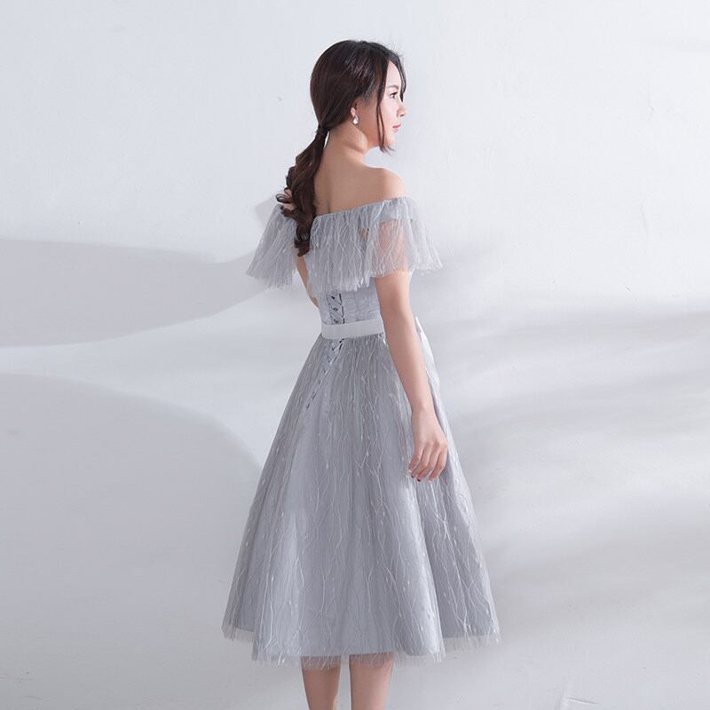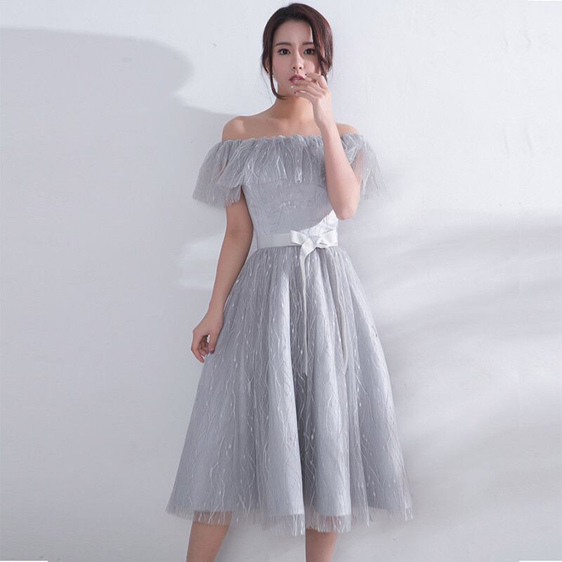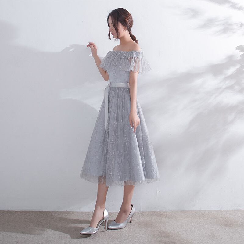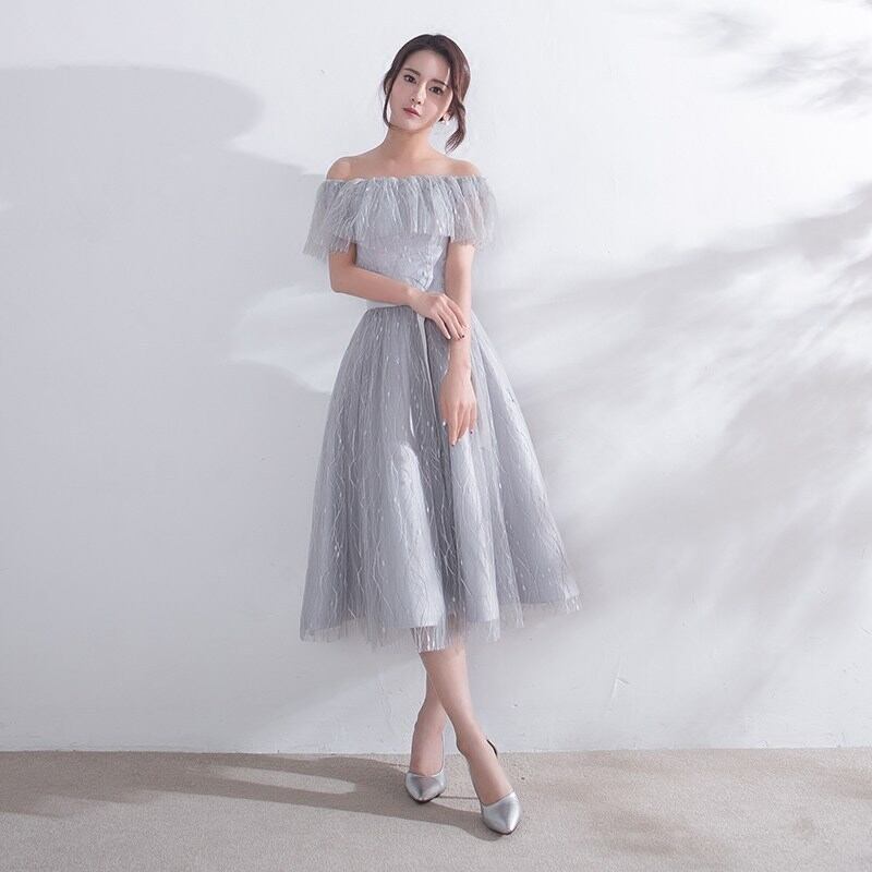 ☆SALE☆ オフショルダー グレーロングパーティードレス 結婚式 二次会