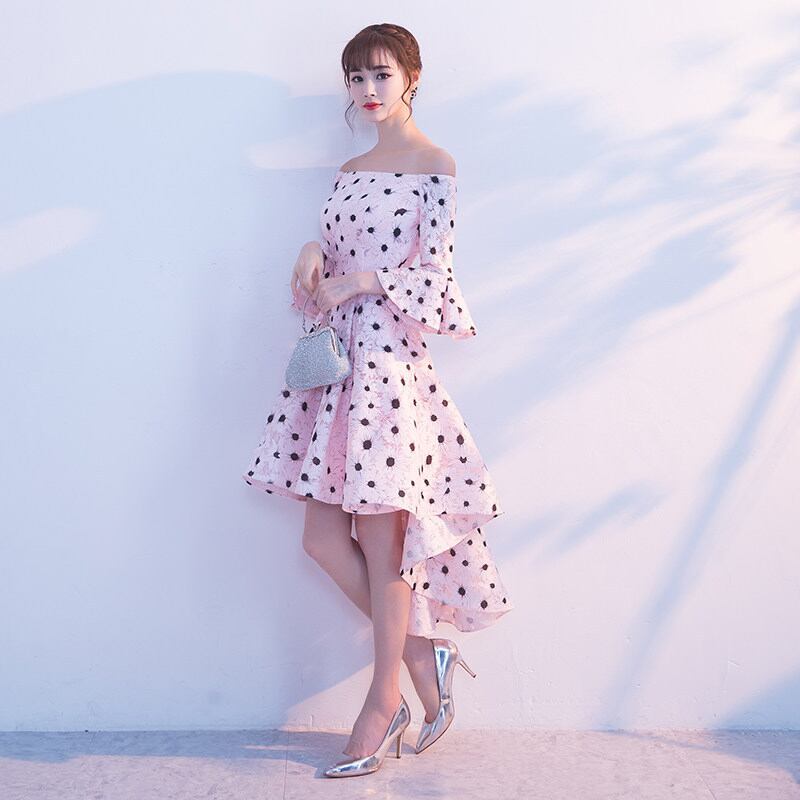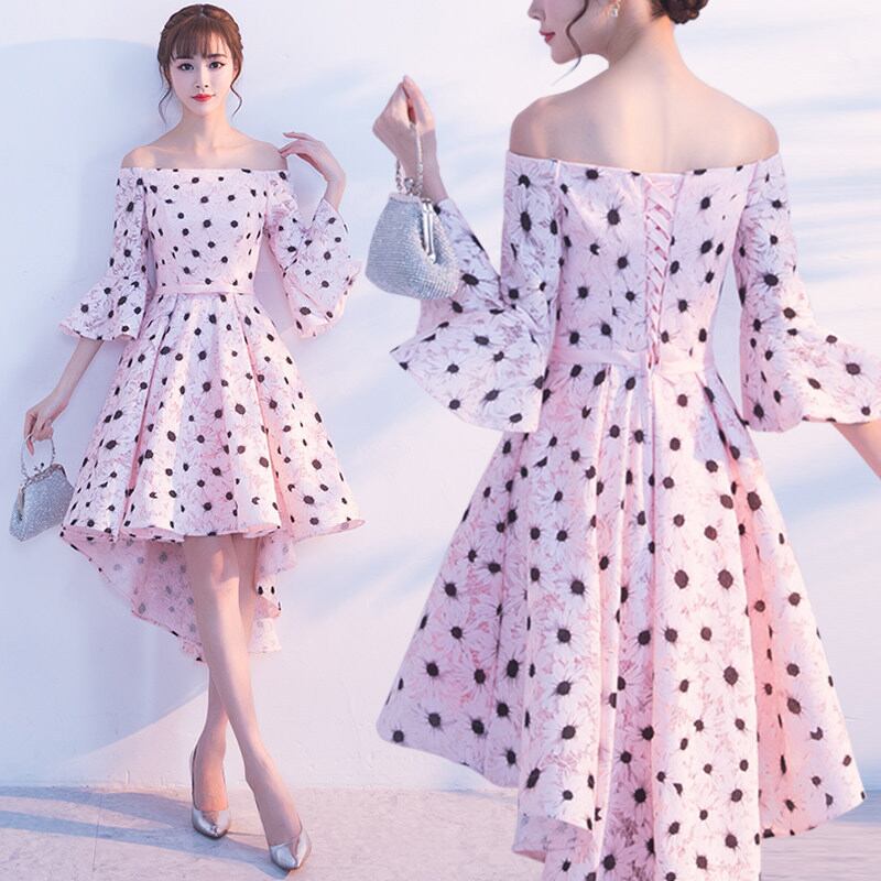 ☆SALE☆ オフショルダー フィッシュテール ピンクパーティードレス 結婚