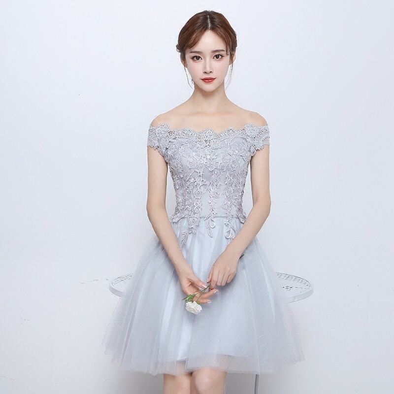 ☆SALE☆ オフショルダーレースパーティードレス 膝丈 ミニ 結婚式 二次会