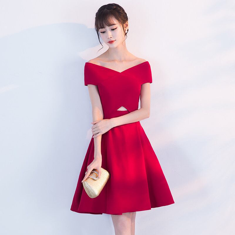 ☆SALE☆ オフショルダー赤パーティードレス 結婚式 二次会 キャバ デート