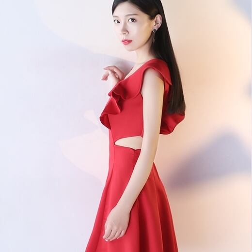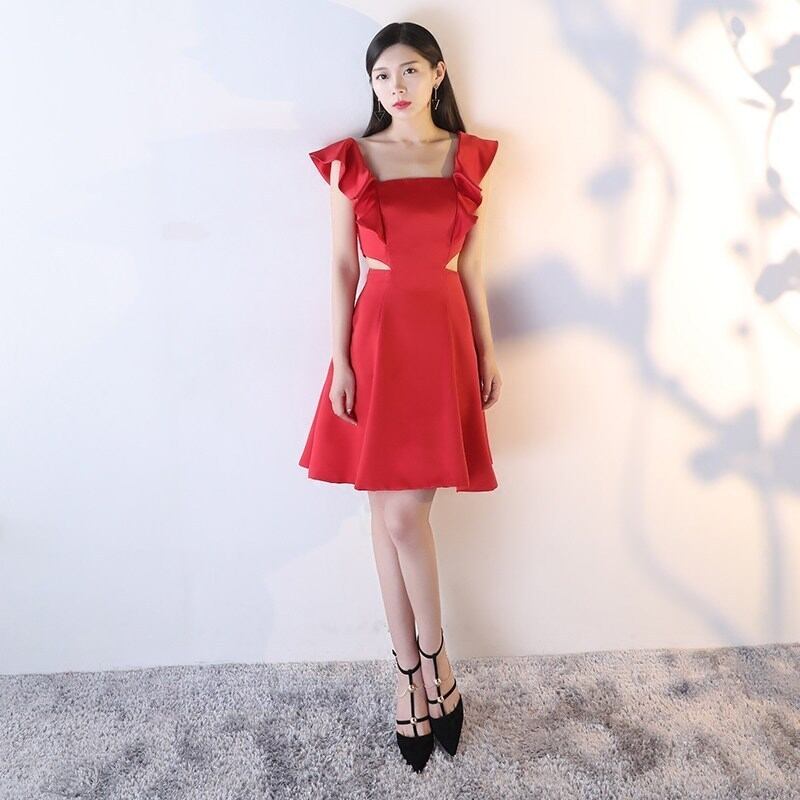 ☆SALE☆ セクシーフリル 赤 パーティードレス 結婚式 キャバ 二次会 衣装
