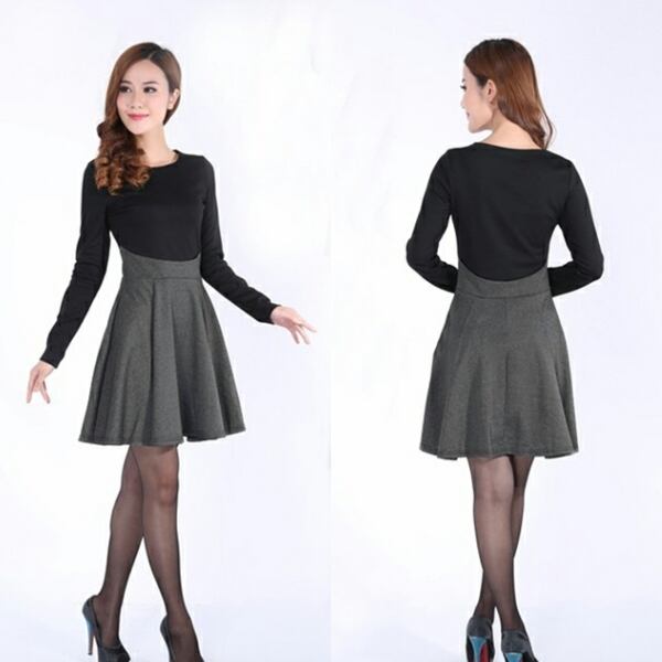 ☆SALE☆ ドッキング フレアパーティードレス ワンピース 長袖 黒ブラック