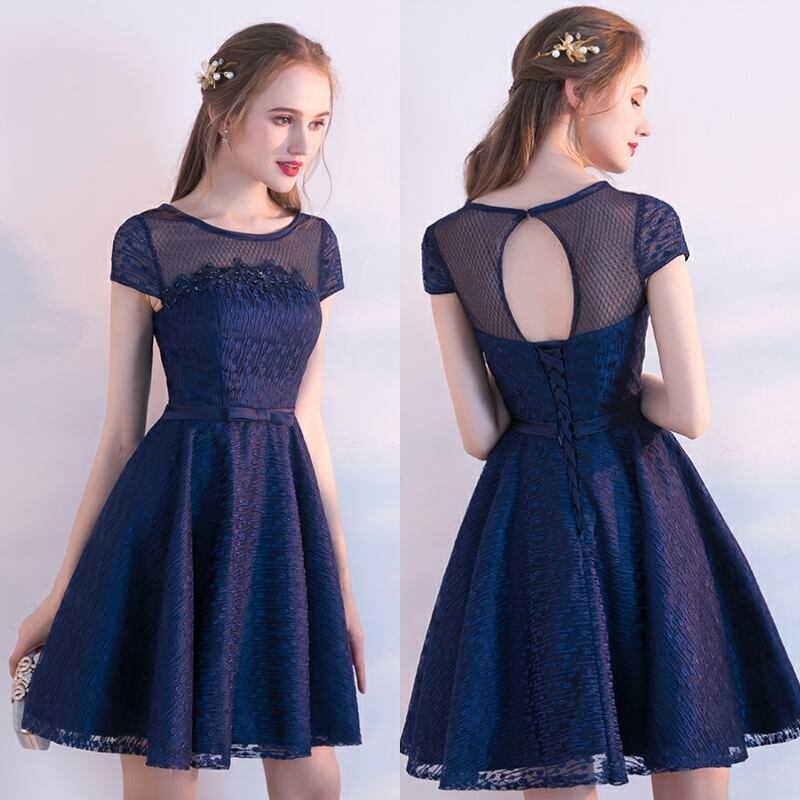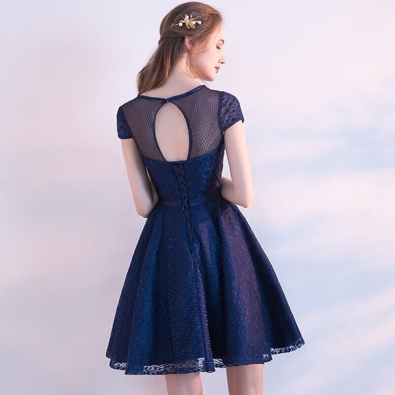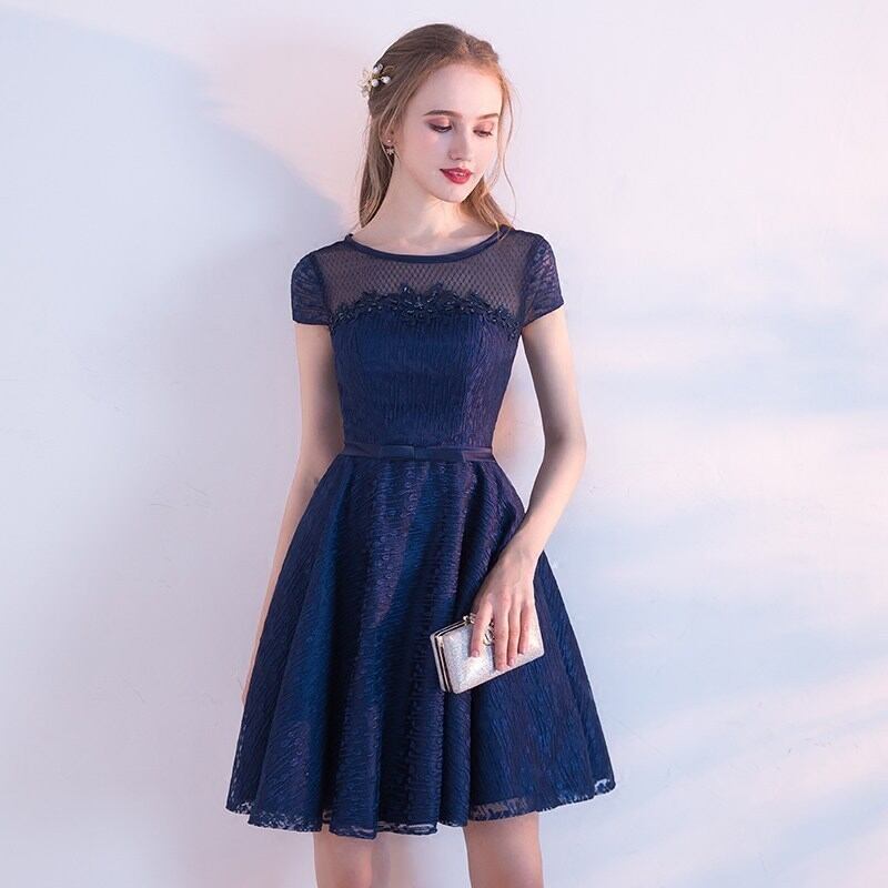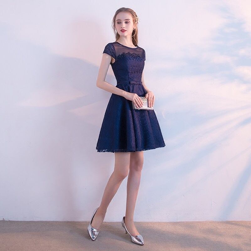 ☆SALE☆ ネイビー半袖ミニパーティードレス 結婚式 二次会 フォーマル