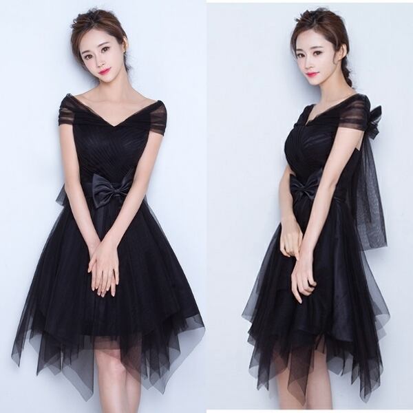 ☆SALE☆ バッグが可愛い Vネック 黒パーティードレス ブラック 結婚式