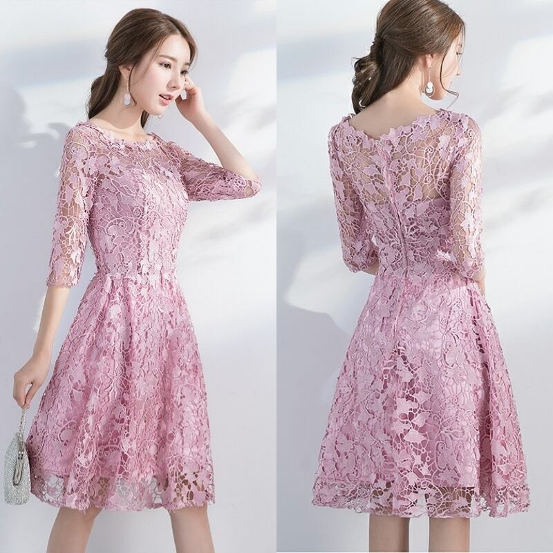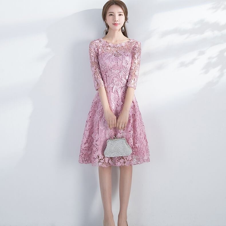 ☆SALE☆ ピンク レースパーティードレス 膝丈 結婚式 二次会 ママ 発表会