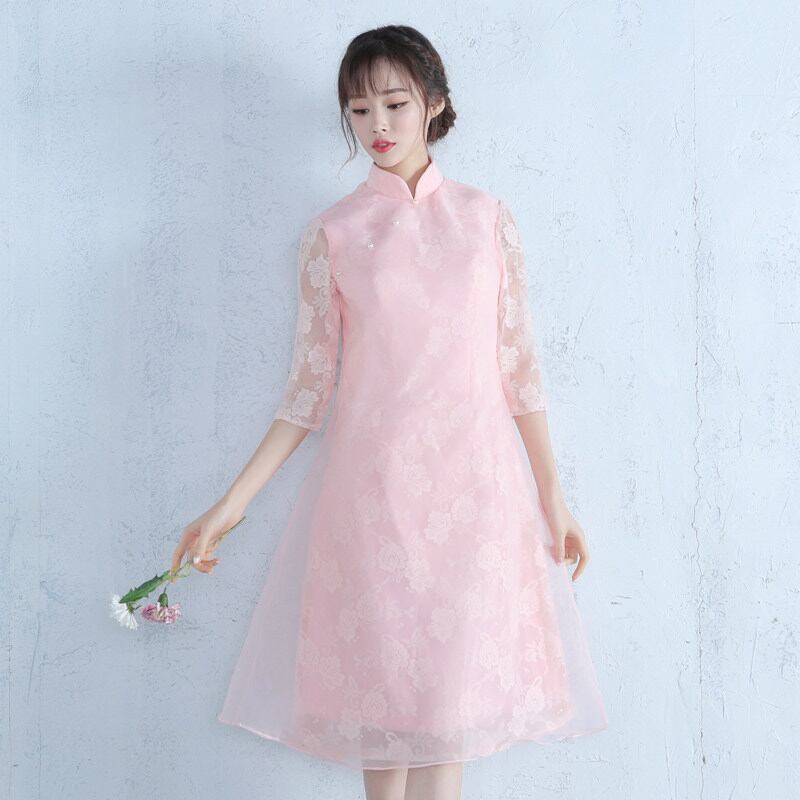 ☆SALE☆ ピンク 可愛いAラインパーティードレス 膝丈 結婚式 二次会 衣装