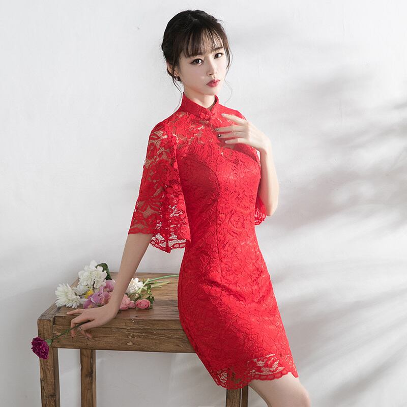 ☆SALE☆ フレア袖 赤 パーティードレス ミニ 膝丈 結婚式 二次会 発表会
