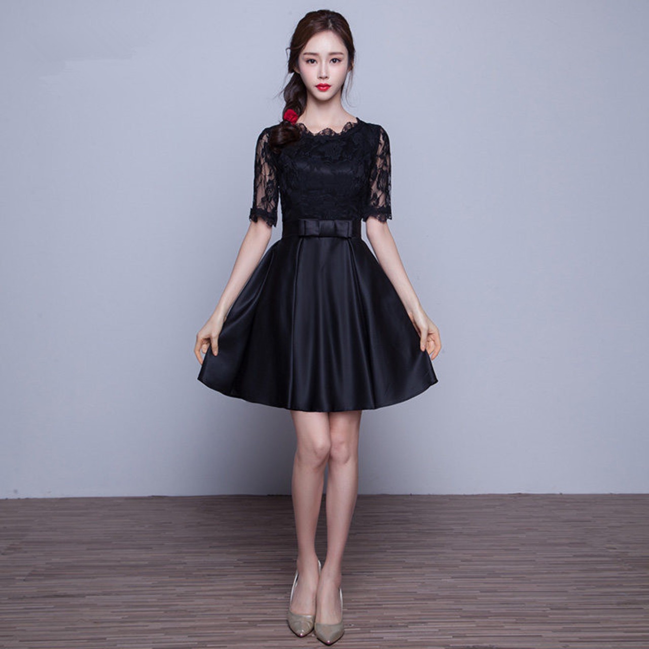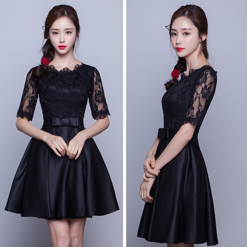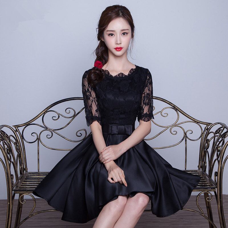 ☆SALE☆ ブラックパーティードレス レース 切り替え フレア 式典 発表会