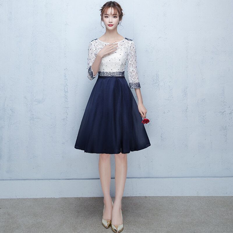 ☆SALE☆ レース切り替え パーティードレス 膝丈 結婚式 演奏会 式典 A