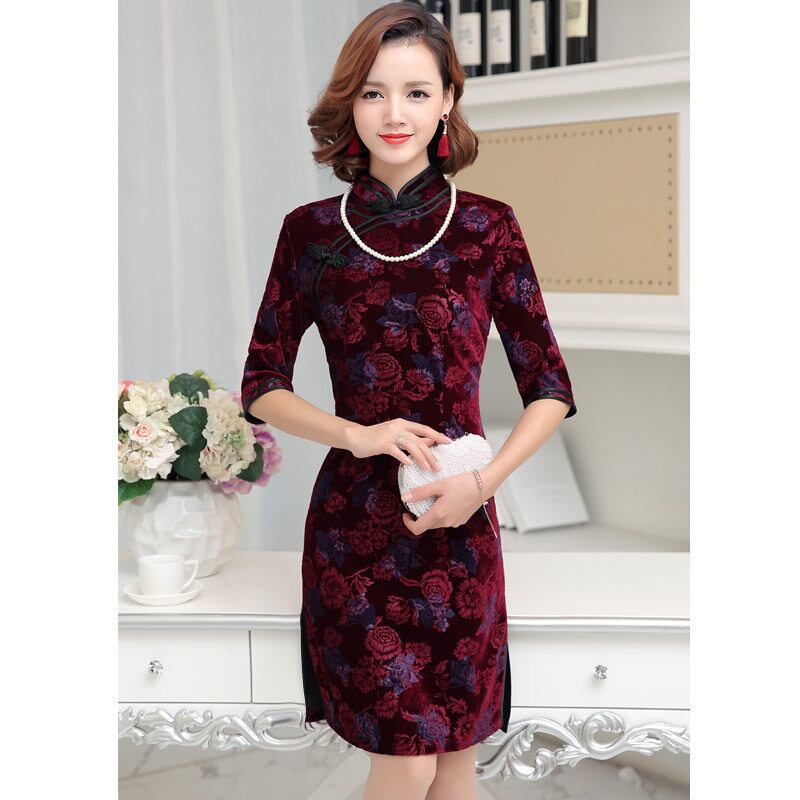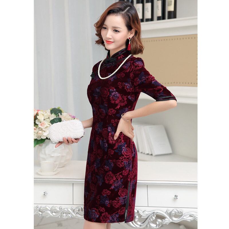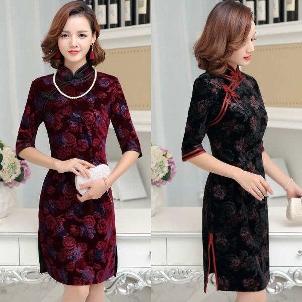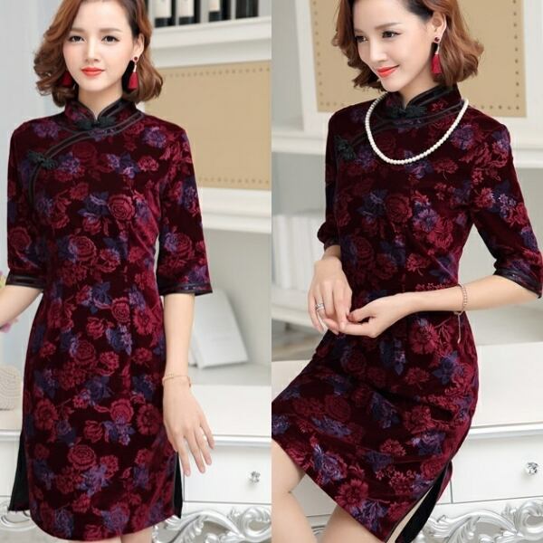 ☆SALE☆ 五分袖 花柄 シックなパーティードレス 結婚式 ママ 謝恩会