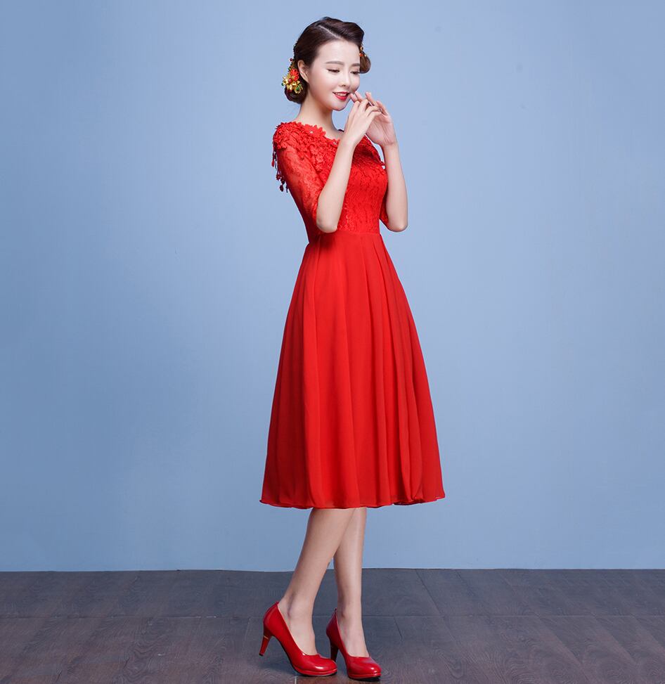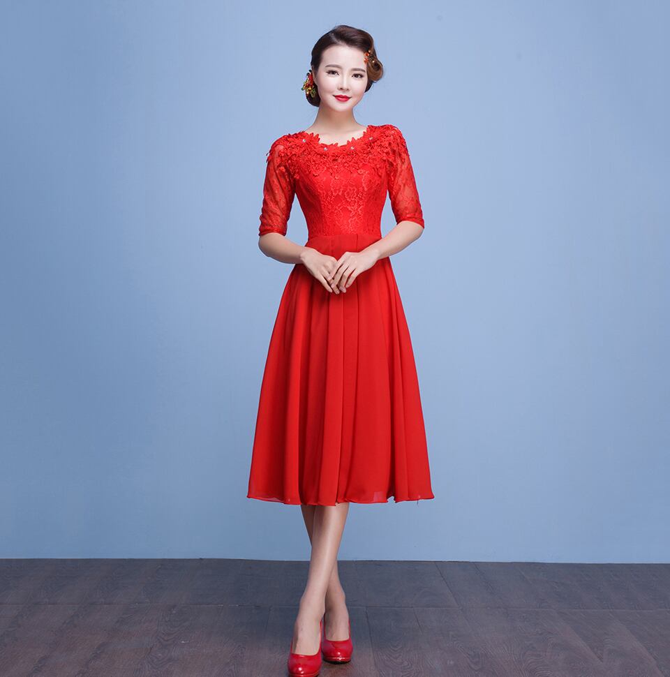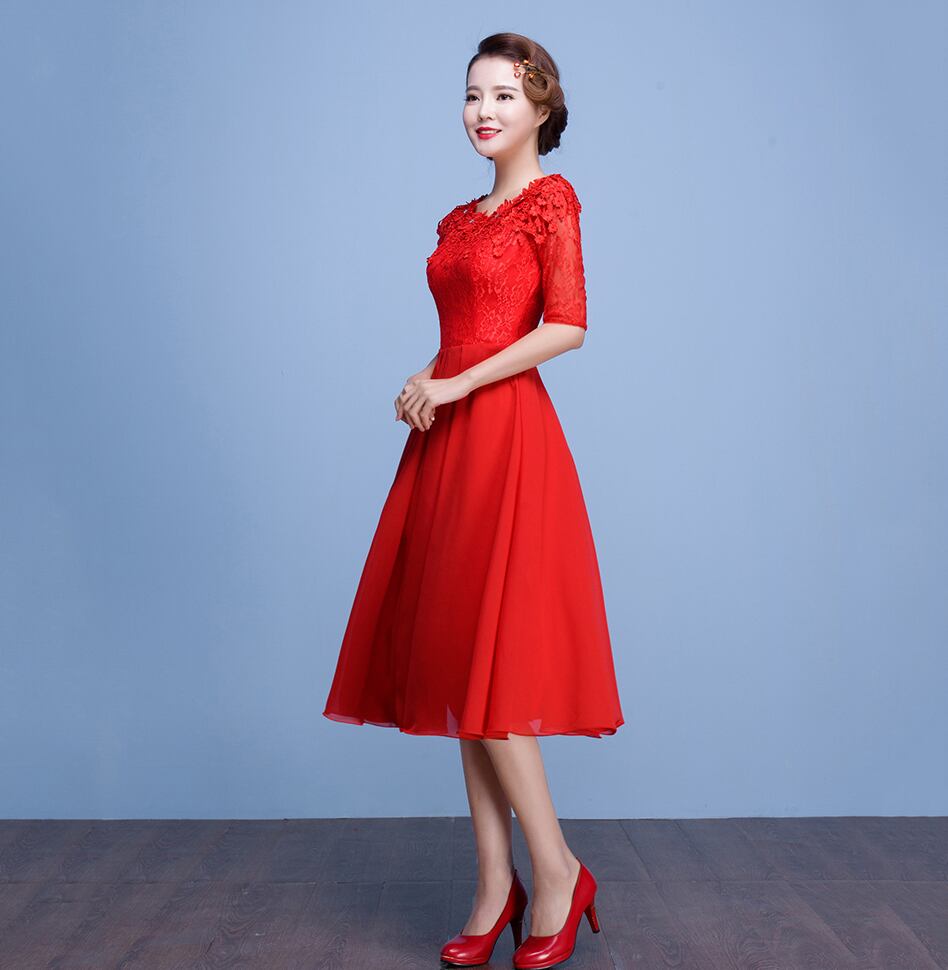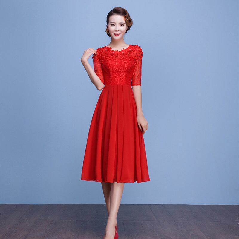 ☆SALE☆ 五分袖パーティードレス 膝丈 赤 花モチーフ 発表会 演奏会 A