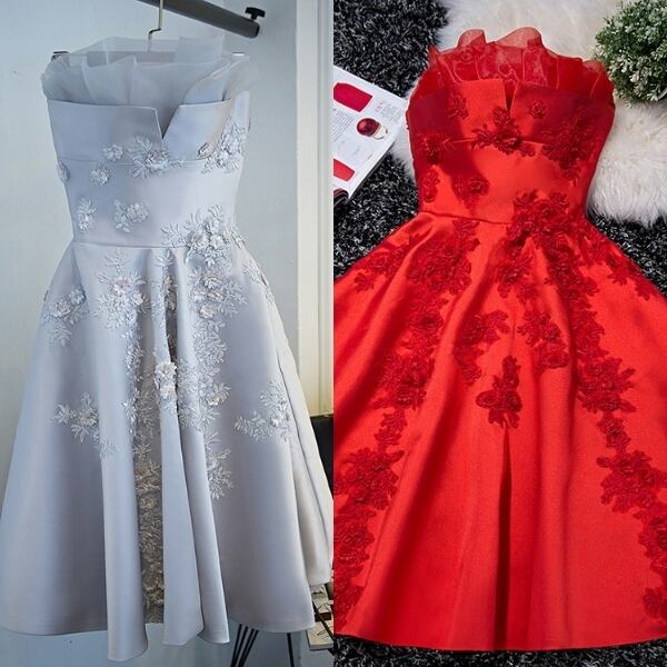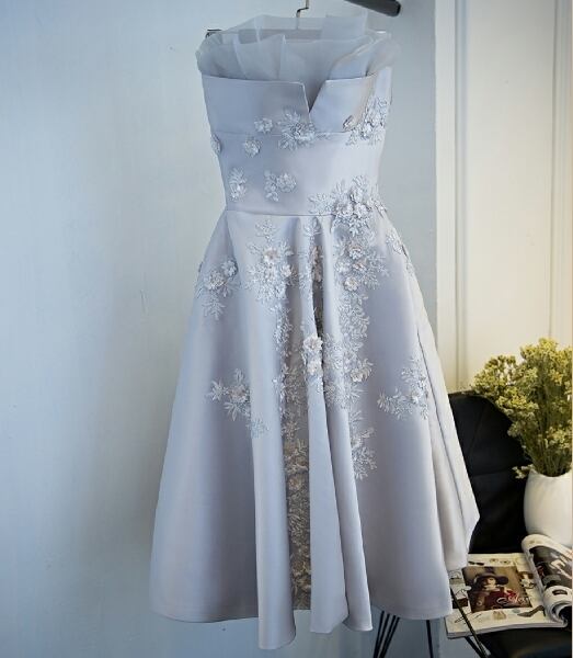 ☆SALE☆ 刺繍の綺麗なパーティードレス サテン 結婚式二次会 演奏会 A
