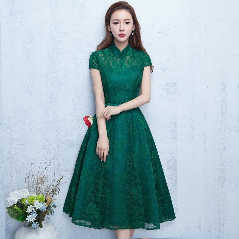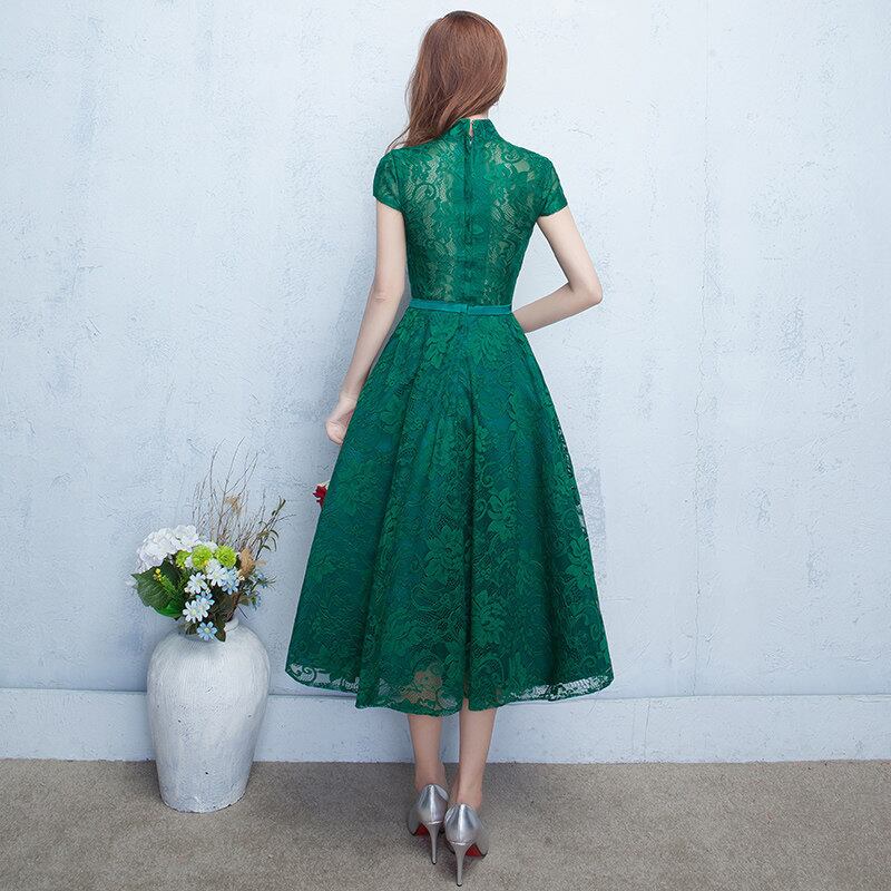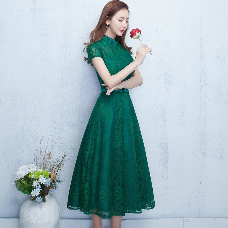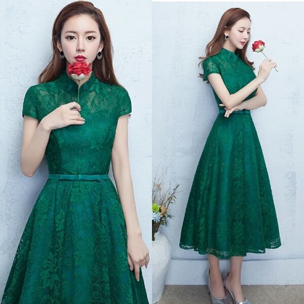 ☆SALE☆ 半袖 ベルト付きロングフレアパーティードレス 黒緑 結婚式 衣装