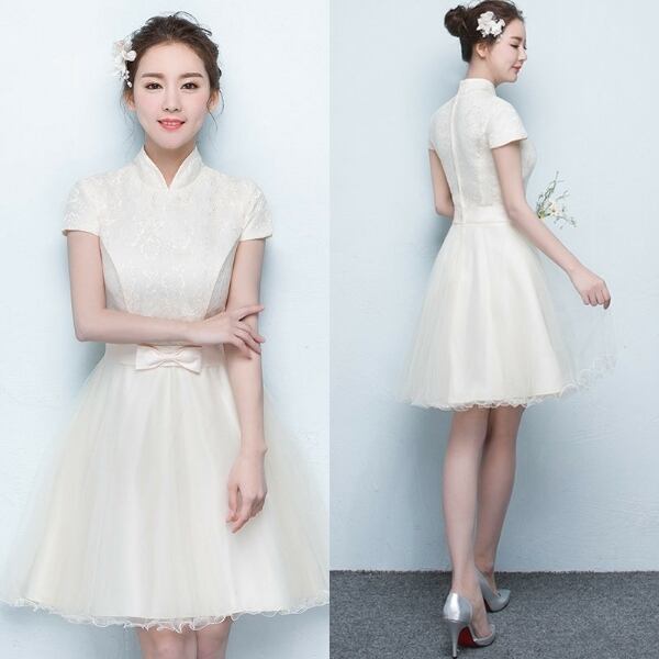 ☆SALE☆ 半袖 ホワイトパーティードレス 光沢 サテン 発表会 演奏会 式典