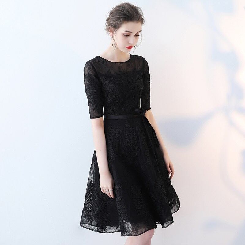 ☆SALE☆ 半袖 黒パーティードレス 結婚式 二次会 発表会 ワンピース