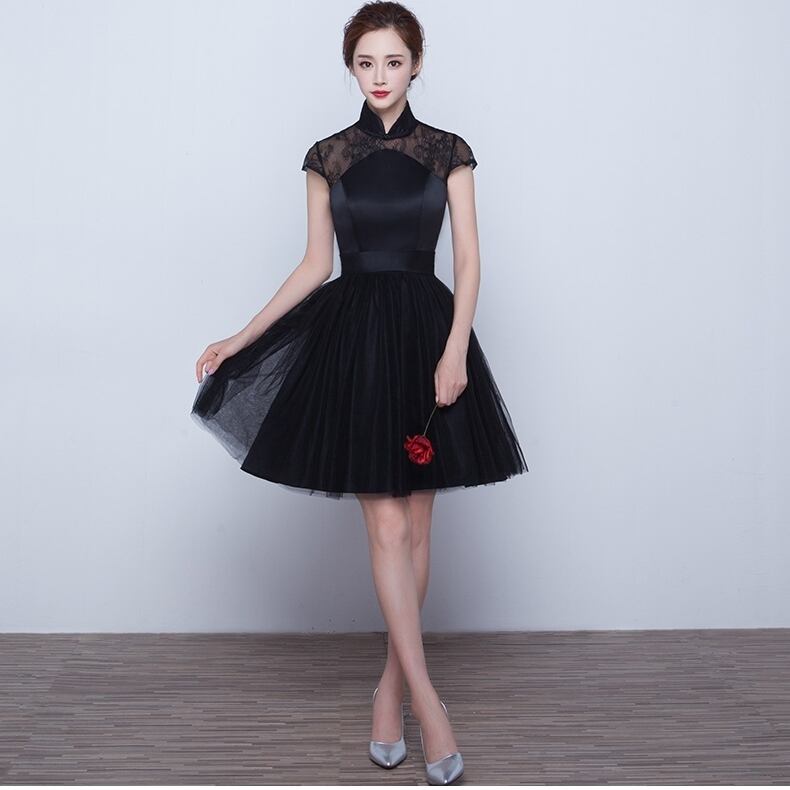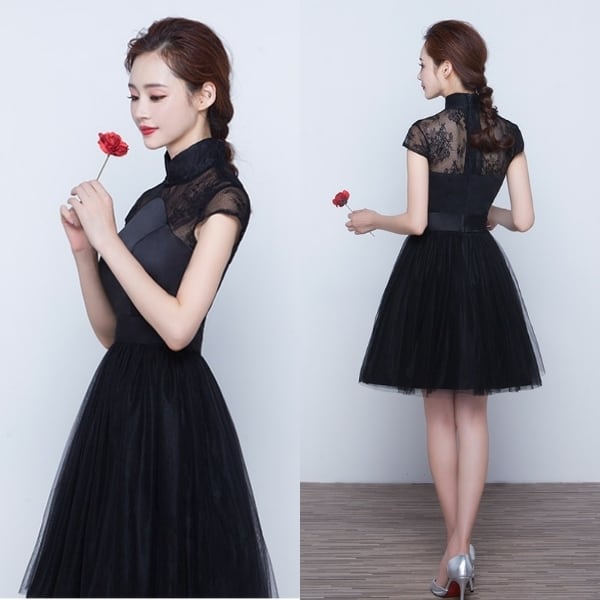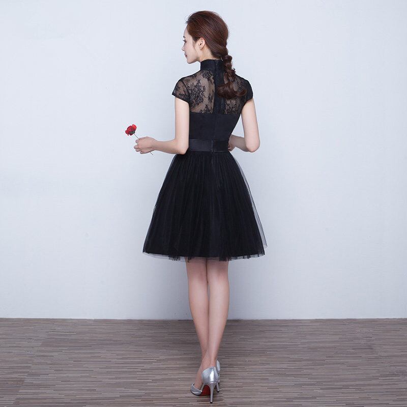 ☆SALE☆ 半袖 黒パーティードレス 透け 膝丈 結婚式 二次会 発表会 衣装