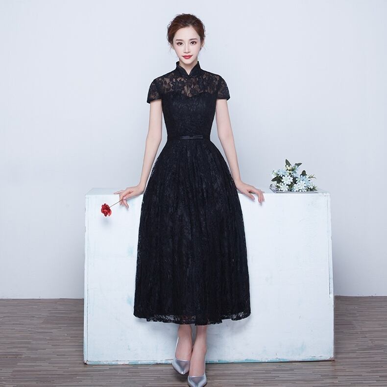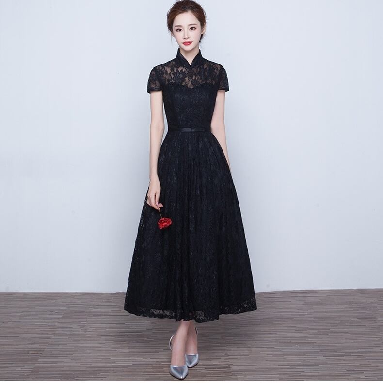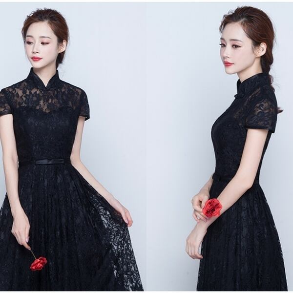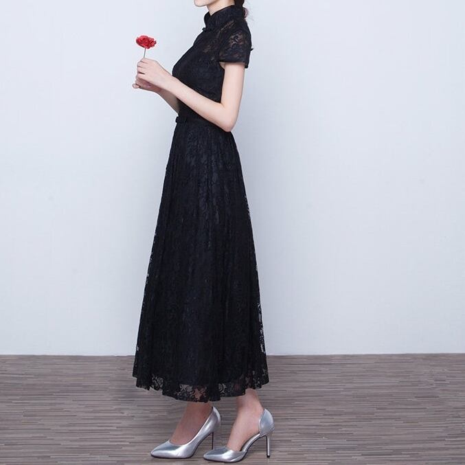 ☆SALE☆ 半袖レース ロングパーティードレス マキシ ブラック フォーマル