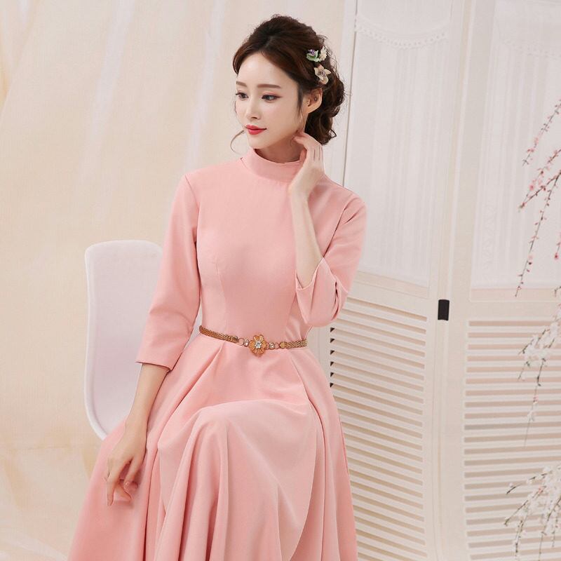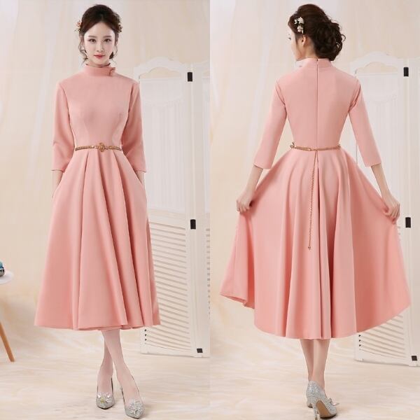 ☆SALE☆ 半袖ロングパーティードレス ピンク 黒 赤 結婚式 二次会 発表会