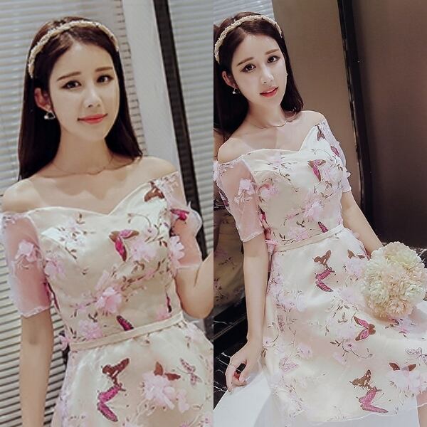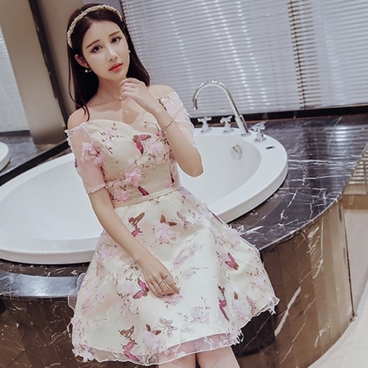 ☆SALE☆ 喋々総柄 パーティードレス ミニ 膝丈 結婚式 演奏会 衣装 E