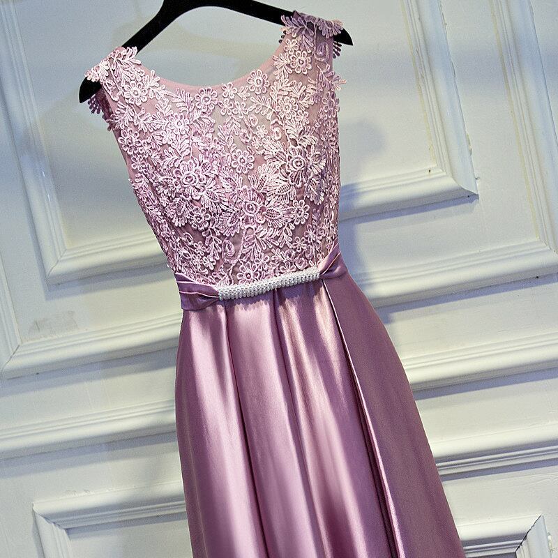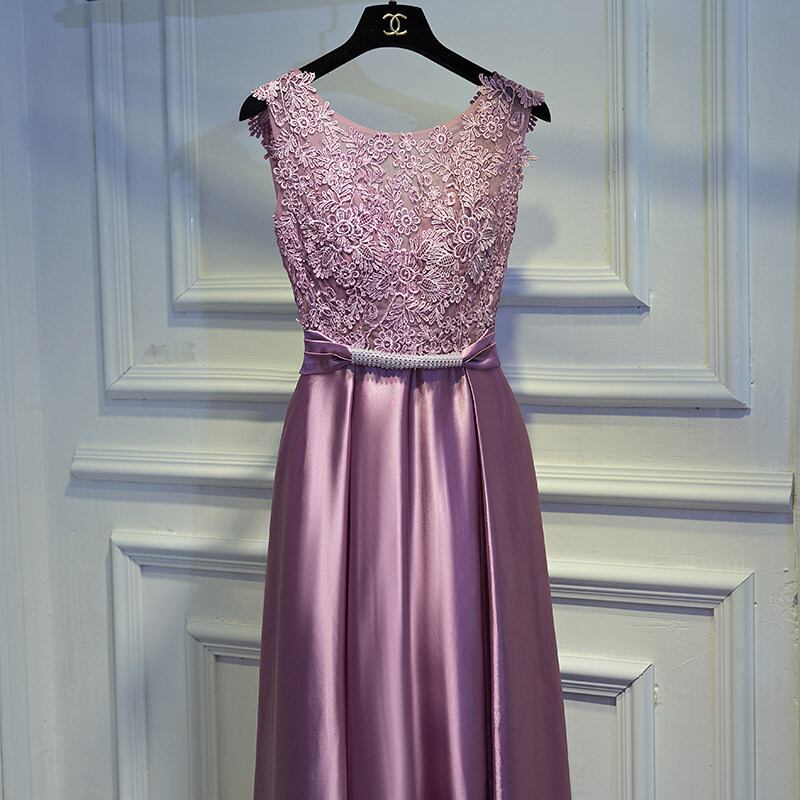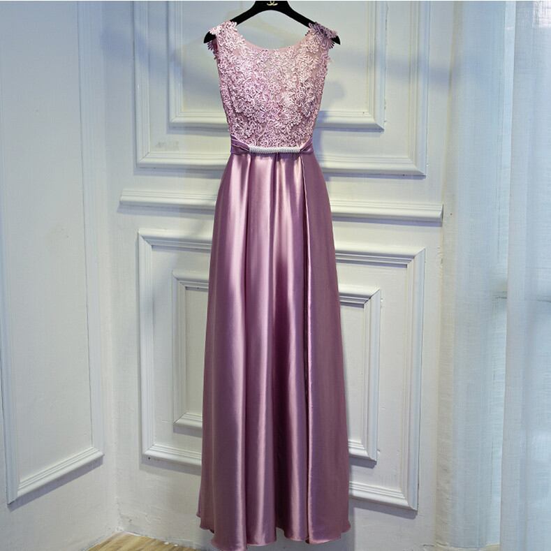 ☆SALE☆ 大人ピンク サテン切替え パーティードレス ロング ノースリーブ