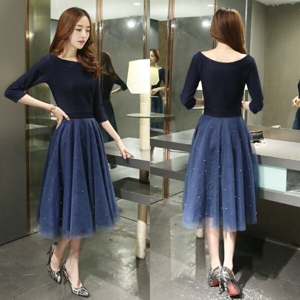☆SALE☆ 大人可愛い チュールパーティードレス 長袖 ワンピース 結婚式