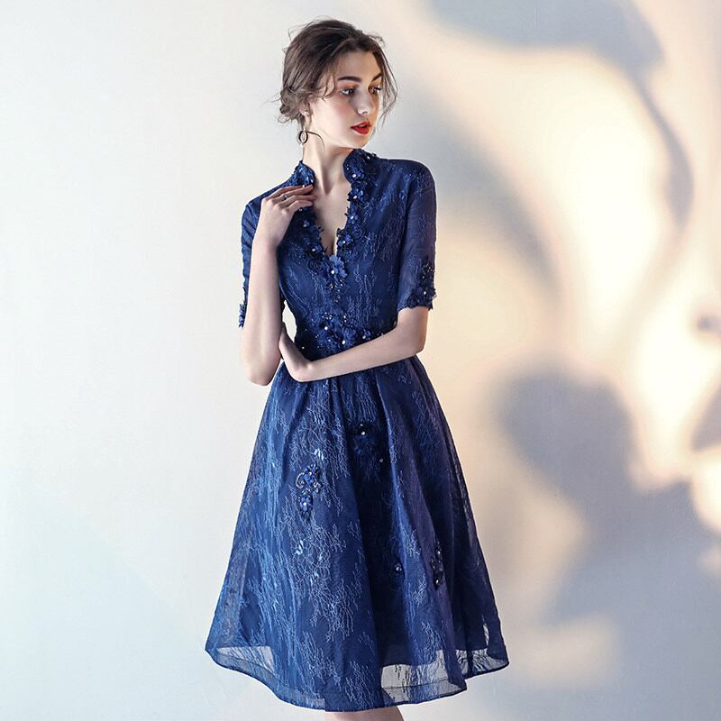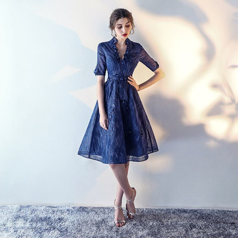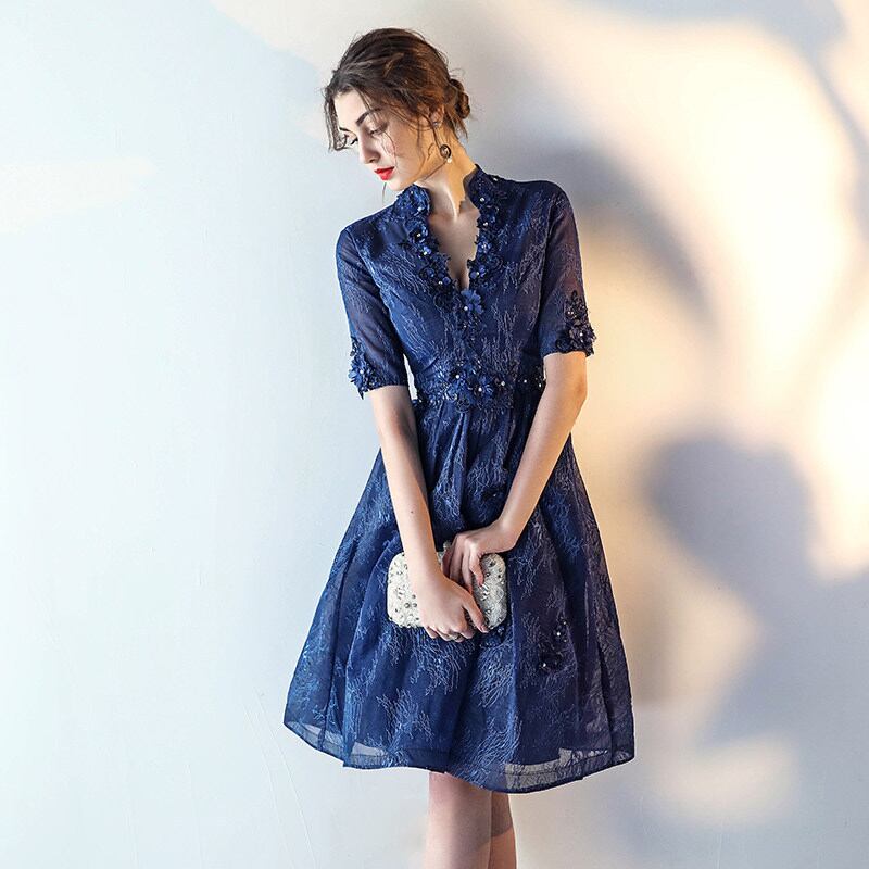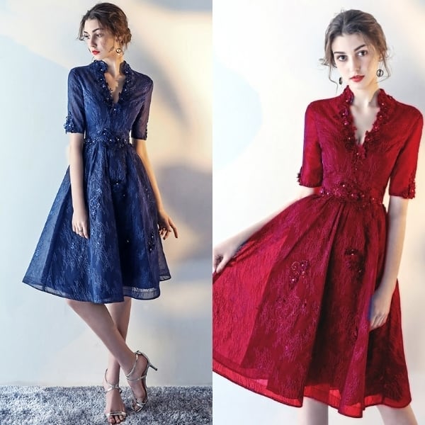 ☆SALE☆ 大人可愛いフレアパーティードレス 赤 黒 紺 結婚式 半袖 発表会