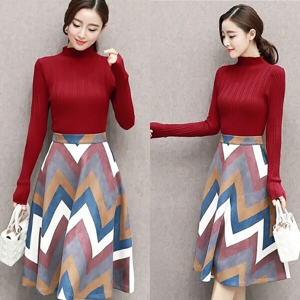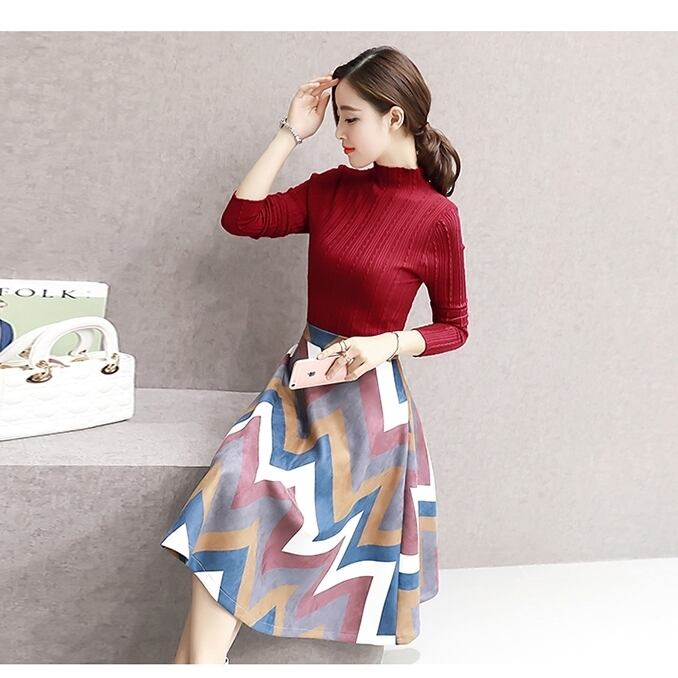L:肩幅33、ウエスト71、着丈48、袖丈52、スカート丈65