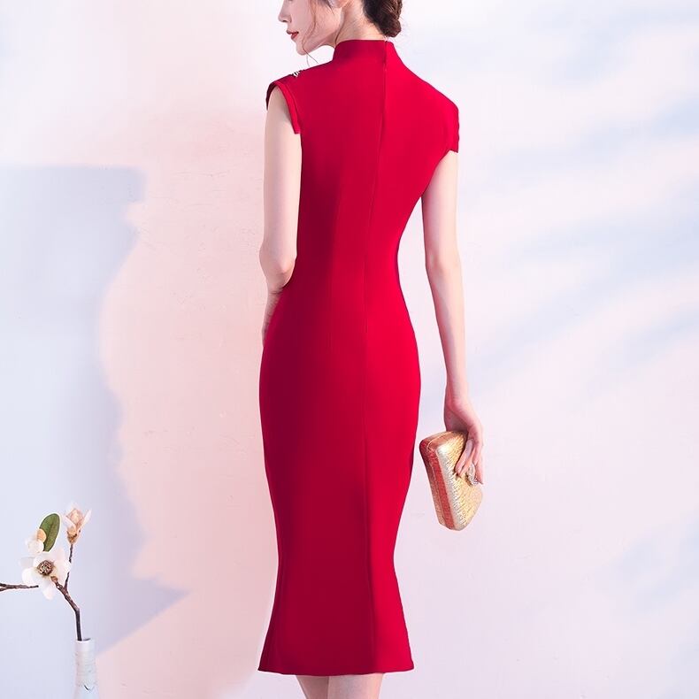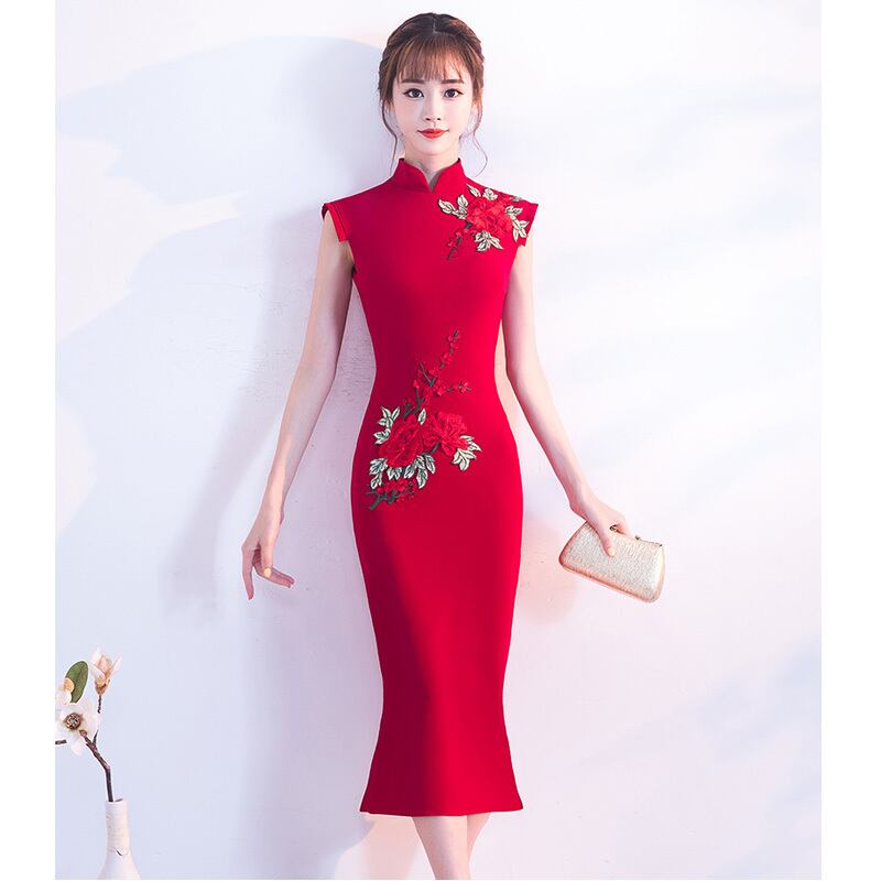 ☆SALE☆ 披露宴 お呼ばれ パーティードレス ノースリーブ ひざ下 赤