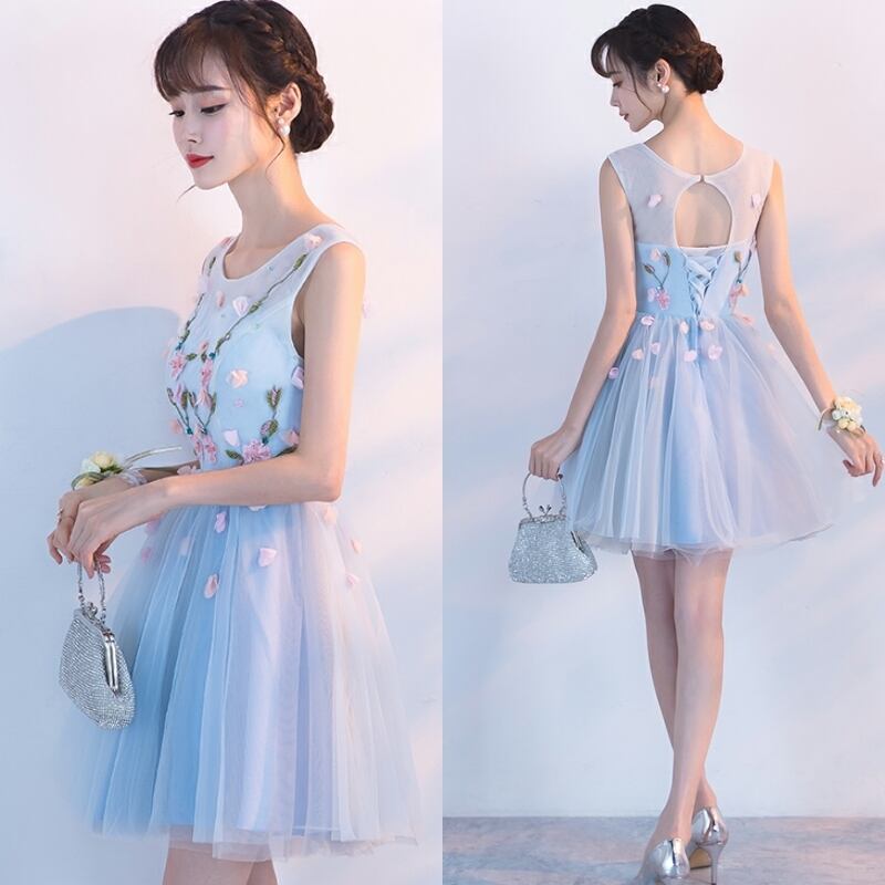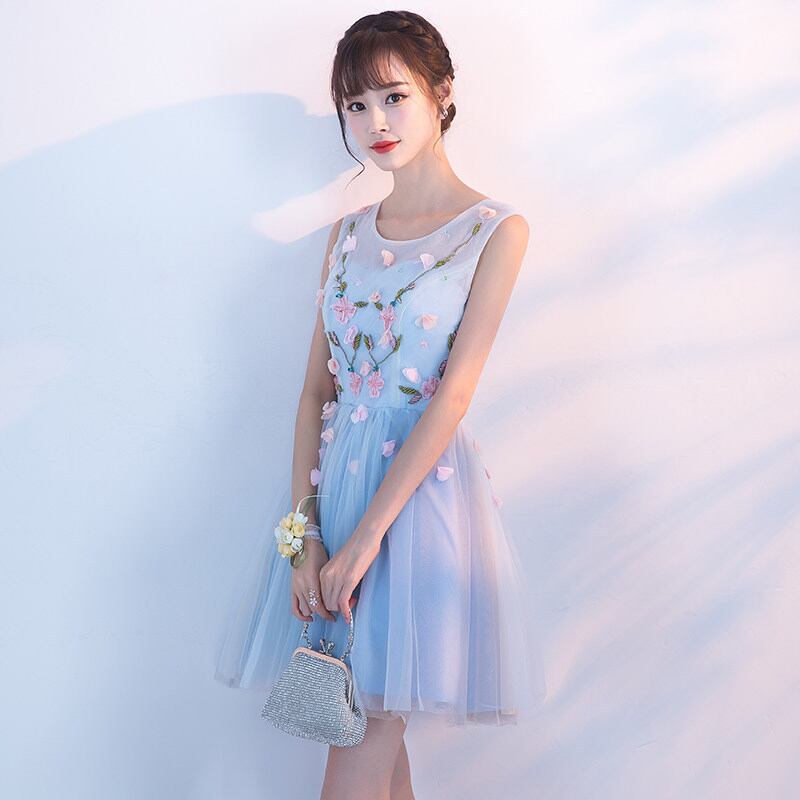 ☆SALE☆ 水色お花モチーフパーティードレス チュール 結婚式 二次会 衣装