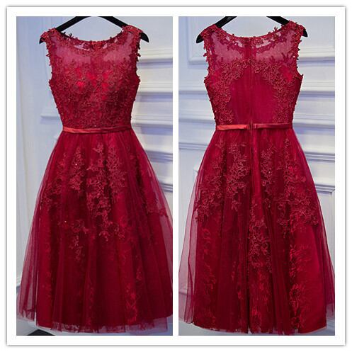 ☆SALE☆ 深紅のノースリーブミドル丈パーティードレス カップ付き