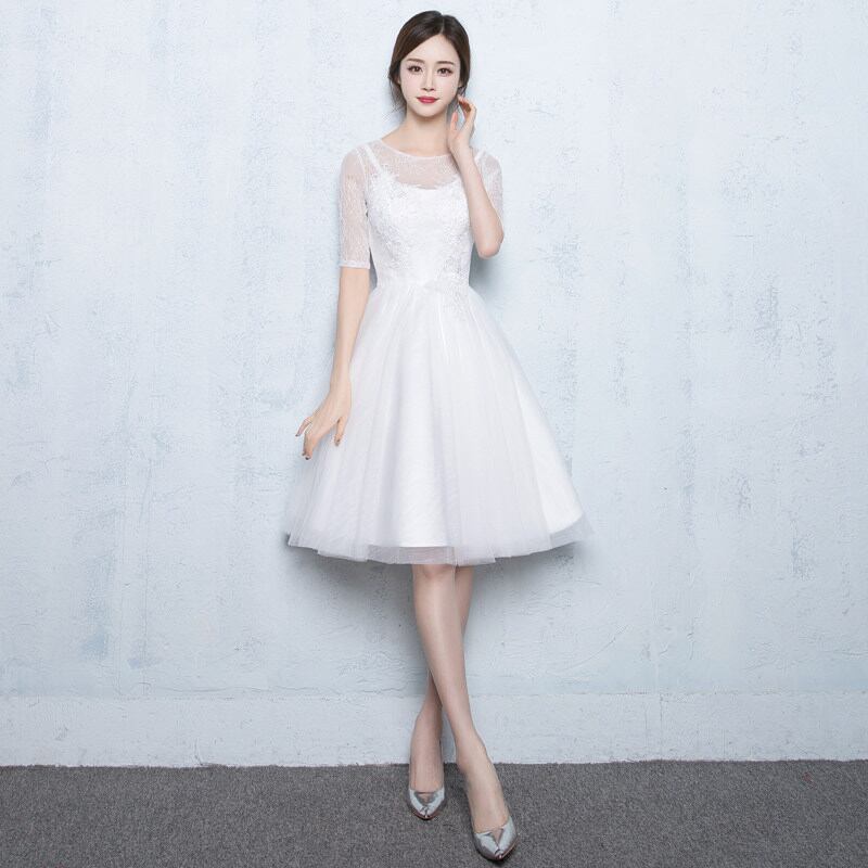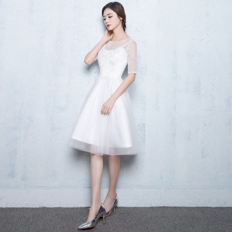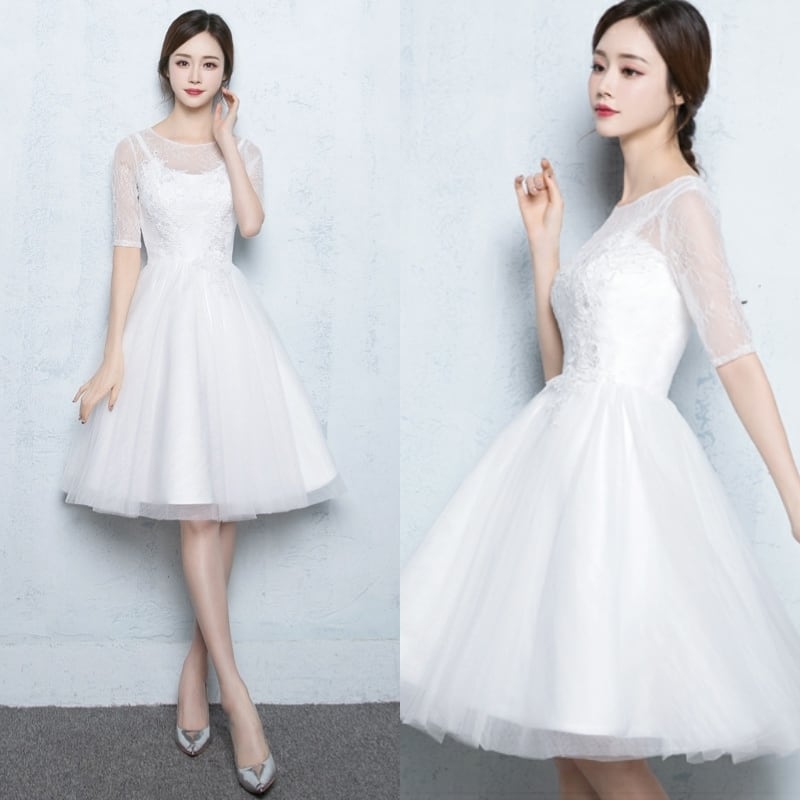 ☆SALE☆ 清楚な白チュールパーティードレス 膝丈 結婚式 二次会 演奏会