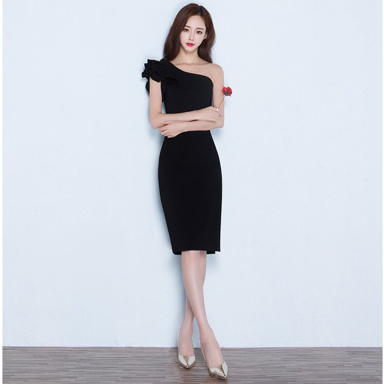 ☆SALE☆ 片側ショルダー パーティードレス 黒 ブラック 結婚式 二次会