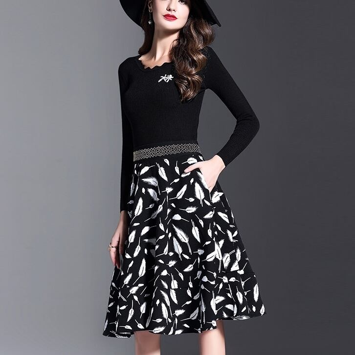 ☆SALE☆ 秋冬長袖切り替えパーティードレス ワンピース 結婚式 二次会
