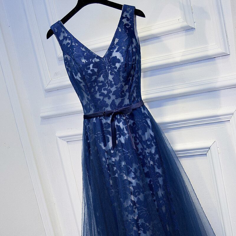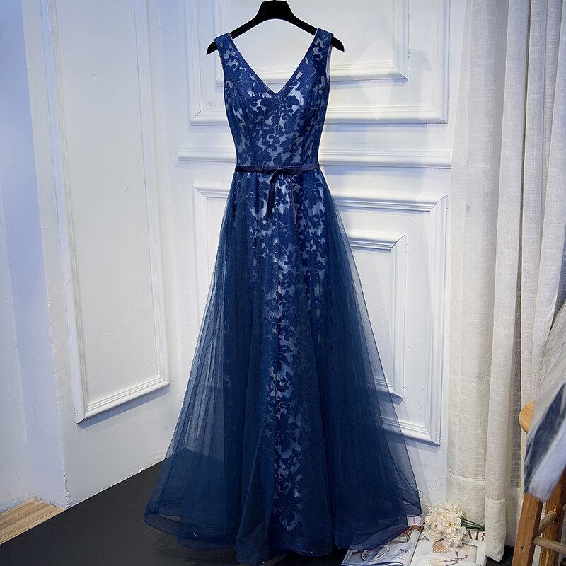 ☆SALE☆ 紺青 レースのパーティードレス ロング 結婚式 演奏会 発表会