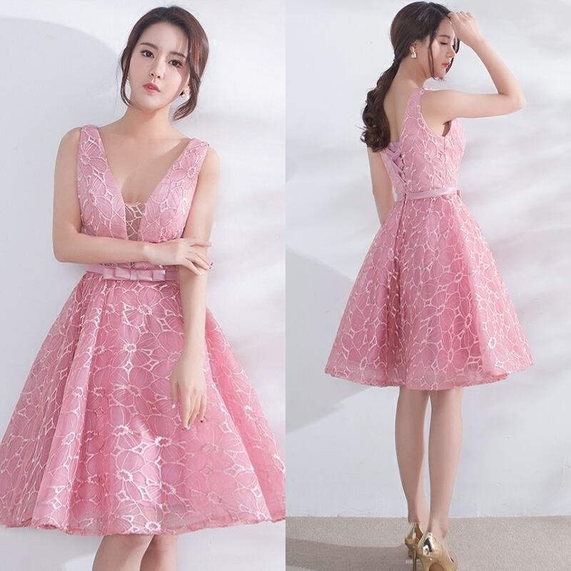 ☆SALE☆ 胸開きセクシー ピンク フレアパーティードレス ミニ 結婚式