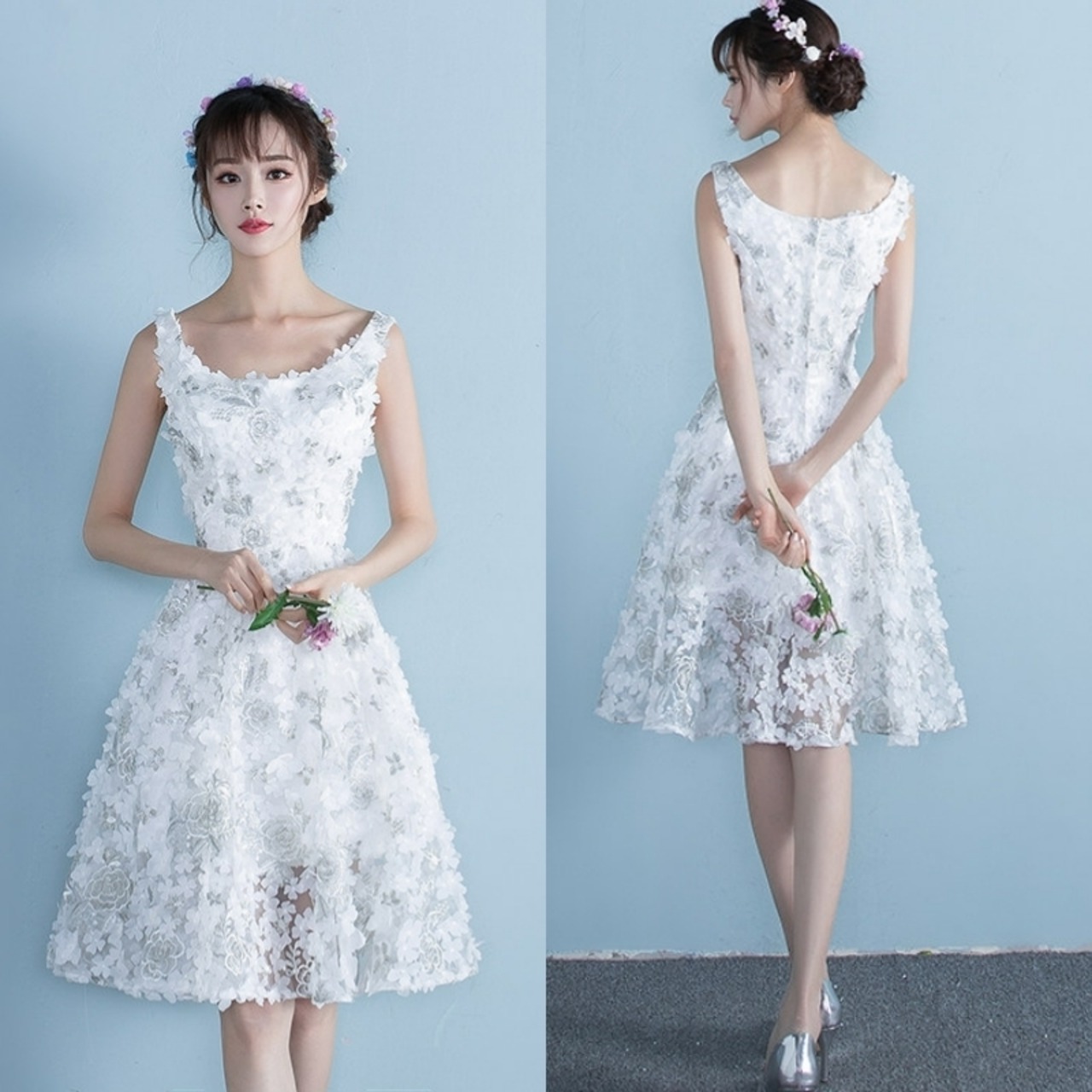 ☆SALE☆ 花たっぷり白パーティードレス 膝丈 結婚式 二次会 キャバ ママ