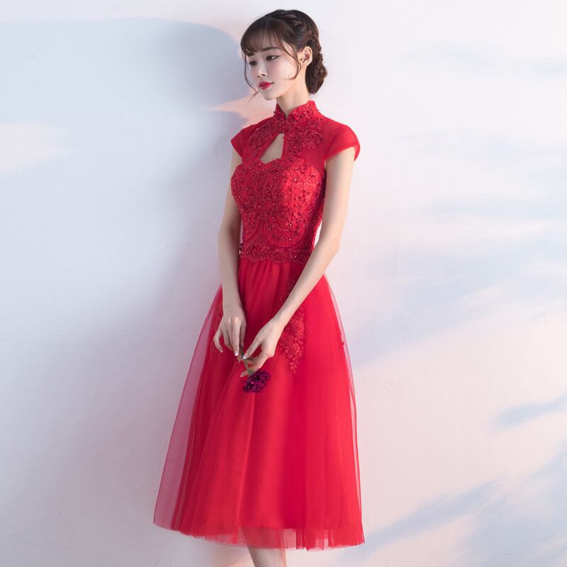 ☆SALE☆ 赤 セクシーパーティードレス 半袖 ロング 結婚式 二次会 演奏会