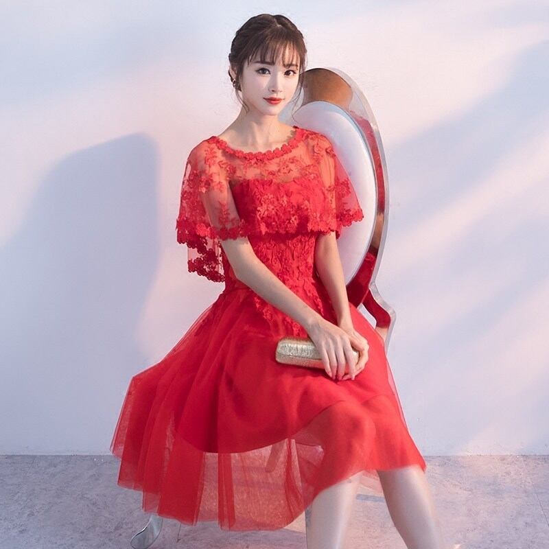 ☆SALE☆ 赤レースパーティードレス 結婚式 二次会 発表会 演奏会 衣装
