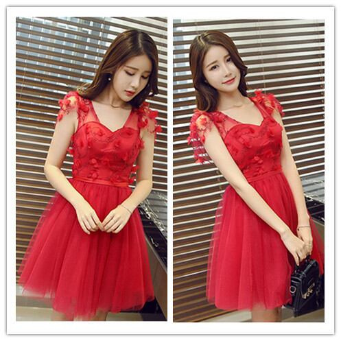 ☆SALE☆ 赤透け感がセクシーな ミニパーティードレス 結婚式キャバ衣装 E